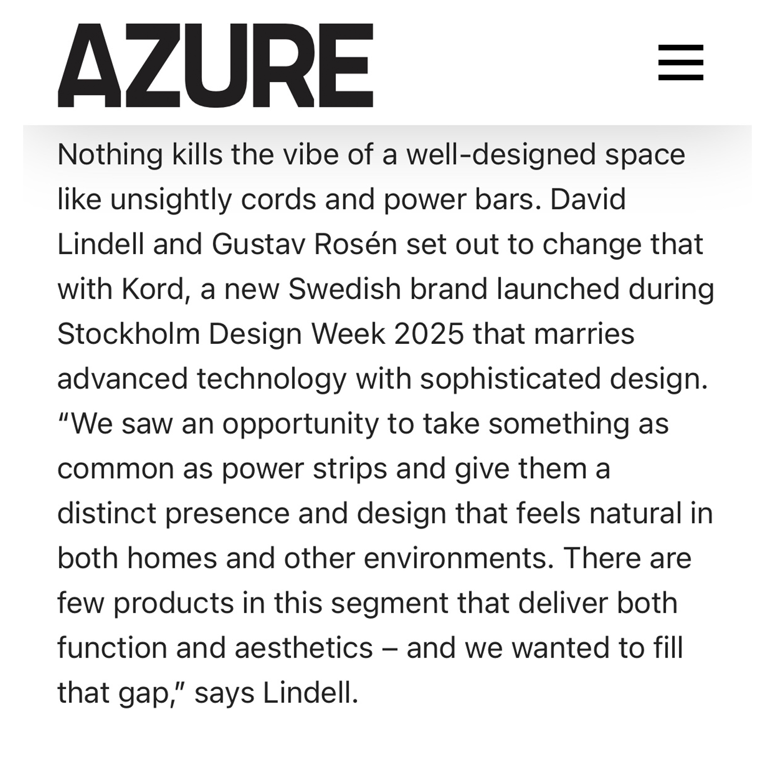 AD Magazine lists KORD as #2 of highlights and trends of Stockholm Design Week.