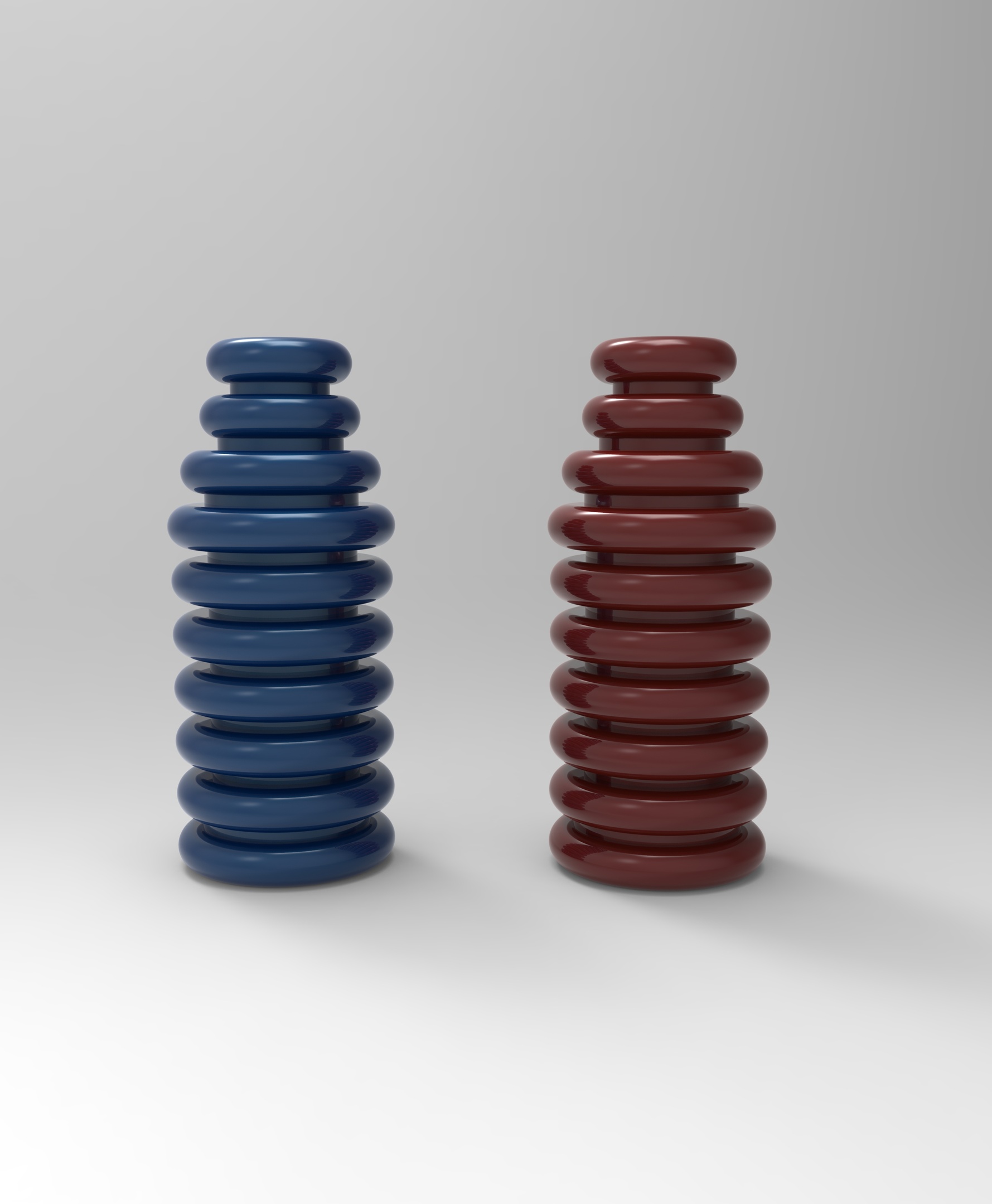 Turned painted wood. The prototype in 3D printed plastic.